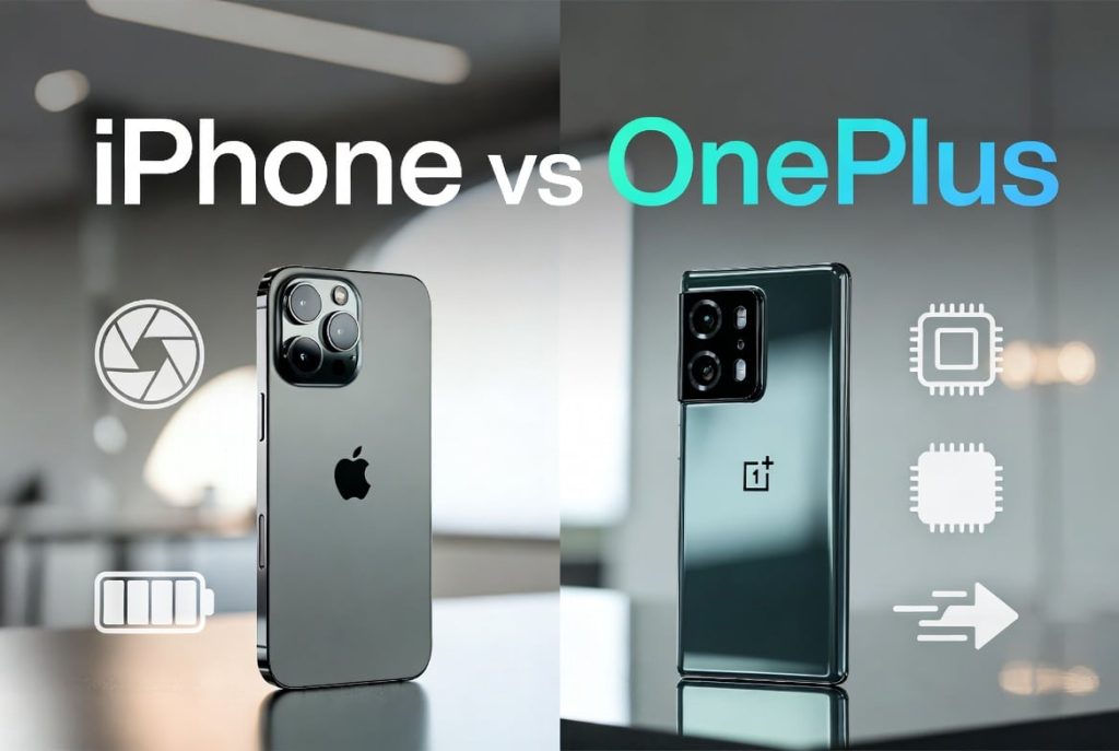 iPhone models favor camera fidelity and longer software support; OnePlus models usually favor customization and faster charging. Your choice should match whether you value ecosystem and updates or speed and value.
